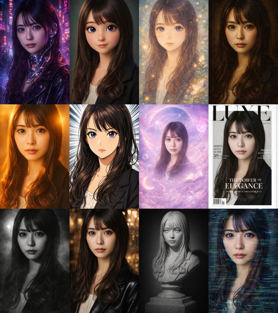 こちらは、1 枚の参照画像に対して 12 個の個別プロンプトを使い、まとめて編集生成するノートブックです。