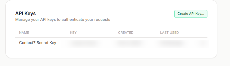 Context7 のダッシュボードにログイン後、API キーを発行します。