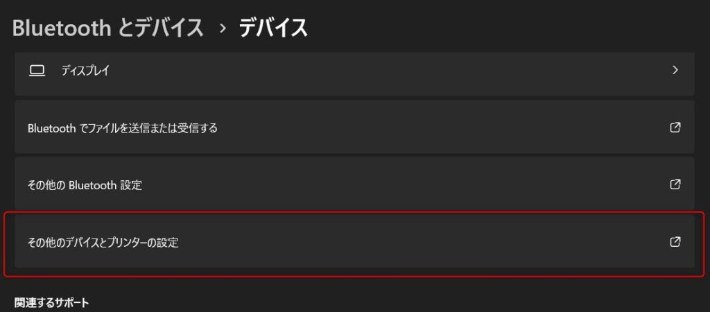 - 「設定」→「Bluetooth とデバイス」→「デバイス」と進む